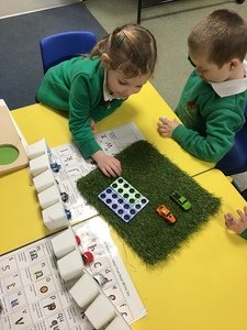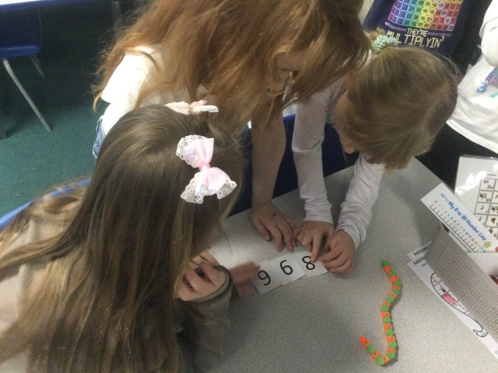 The children in Year 2 have been consolidating their learning of tens and ones and finding sequences of numbers. They had to hunt for numbers hidden around the playground and then put them in order to count and see what sequence they were going up in.