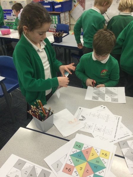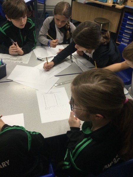 A lot of cross curricular maths work was going on and children were making links with previous learning. There was also a whole school TT Rockstar battle.