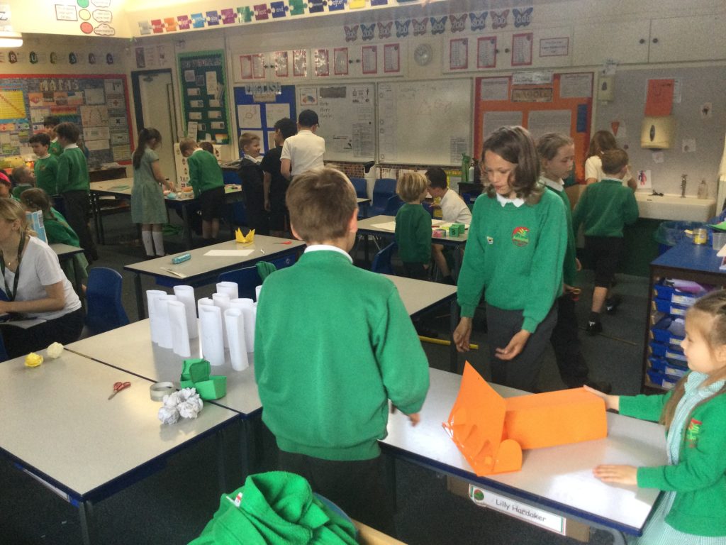 Making structures from newspaper using mathematical shapes and DT skills to build an Eiffel tower as tall as they can!