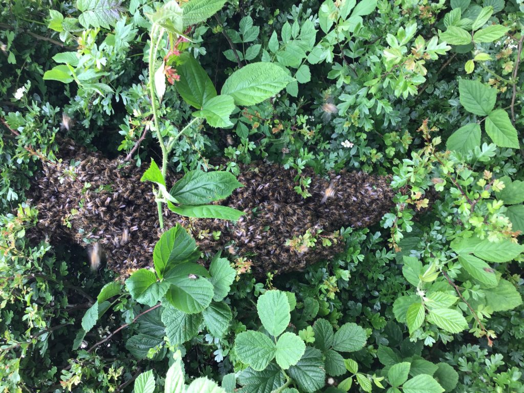 Swarming happens when the hive is getting too small for all the bees and they start ‘making’ a new queen. As soon as the new queen has hatched, she has had her mating flight and is ready to go and find a new home and she takes with her some of the worker bees. The old queen stays back with the rest of the hive and regrowth to a strong hive again.